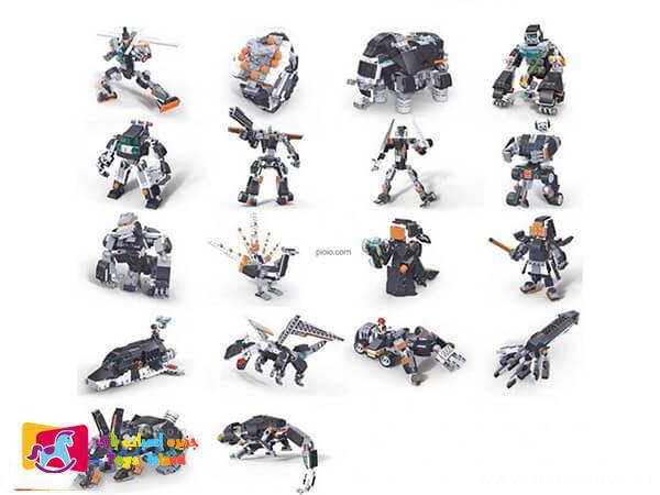 به 36 طرح ماشین، ربات، هواپیما، هلیکوپتر، کانگرو، سگ و … قابل ساختن و سر هم کردن است. لگو 36 طرح