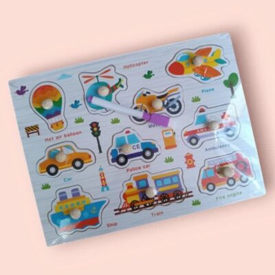 پازل طرح دار چوبی پین دار به همراه تخته وایت برد وسایل نقلیه