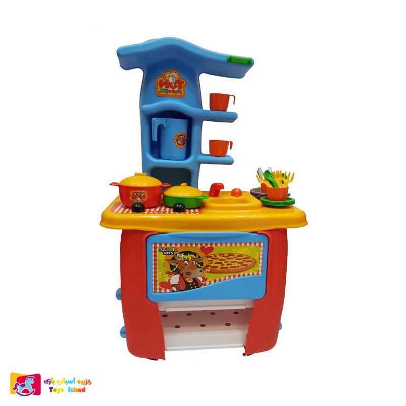 این محصول دارای یک کابینت به همراه گاز و فر ارائه شده است که باعث حداکثر تشابه با آشپزخانه واقعی شده و میل کودک را برای بازی چند برابر خواهد کرد.