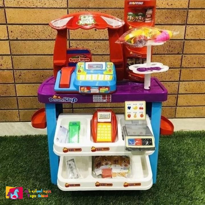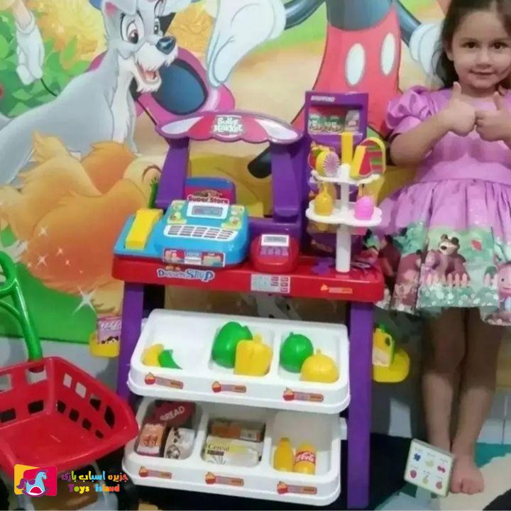 اسباب بازی فروشگاهیبا بهترین کیفیت میباشد.این ست دارای صندوق فروشگاهی،بارکد خوان،چرخ خرید و انواع خوراکی های فروشگاه می‌باشد که کودک می‌تواند در دنیای بازی های خود همراه با دوستانش لحظات جذابی را در قالب فروشنده یا خریدار سپری کند و با این حرفه آشنا شود.این محصول علاوه بر بازی و سرگرمی کودک به تقویت مهارت هایی چون قوه تخیل ،هوش،رعایت نظم کمک شایانی میکند.این ست درون جعبه ای زیبا قرار دارد که قابلیت حمل آسان را به شما میدهد.