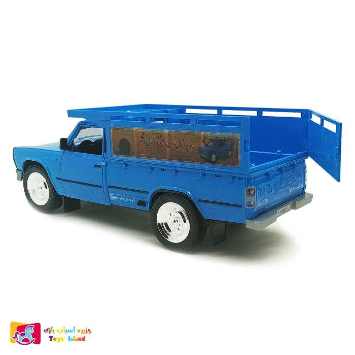 اما مهم ترین نکته قابل توجه اش ، ایرانی بودنش است که توسط شرکت ایرانی درج توی ساخته شده است . این ماشین از ۴۹۰ گرم وزن برخوردار است که یک اسباب بازی تقریبا سبک وزن برای کودکتان محسوب میشود همچنین در پشتی وانت قابلیت باز و بسته شدن دارد . مهم ترین مزیت خرید این اسباب بازی حمایت از کالاهای ایرانی می باشد.