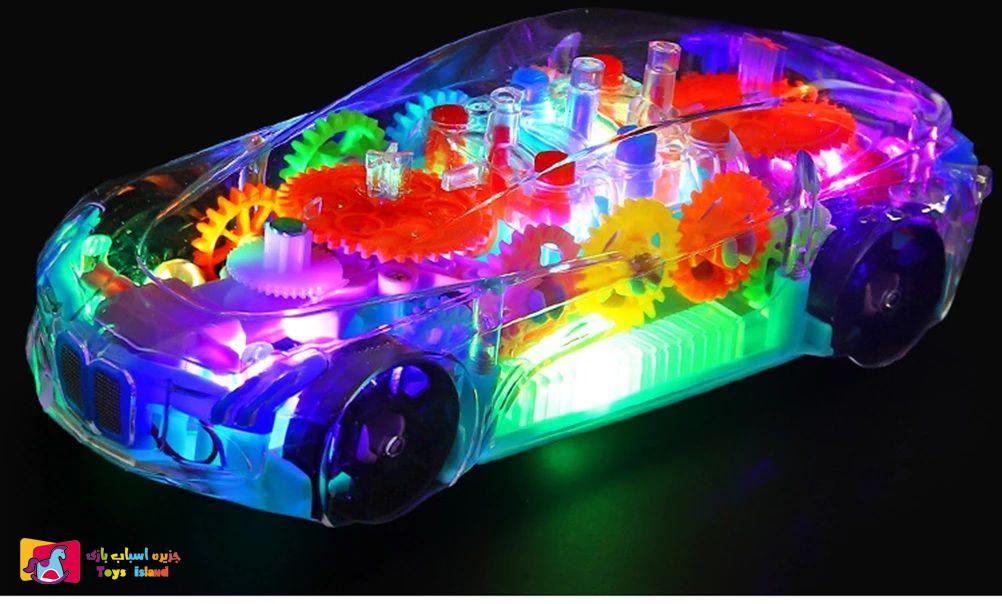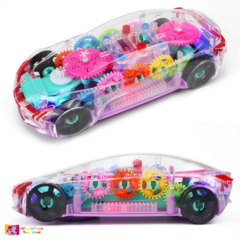 آیتم طرحی جدید از اسباب بازی است که به شکل مکانیکی طراحی شده است. این ماشین به وسیله باتری قلمی انرژی خود را دریافت میکند که قابلیت پخش نور و چراغ را دارد.شفاف بودن بدنه این ماشین به کودک کمک میکند تا با مفهوم چرخ دنده و کارایی آن آشنا شود.رنگ زیبا و افکت صدا و نور باعث شده که برای کودک بسیار جذاب و دوست داشتنی باشد.این اسباب بازی ماشین چرخ دنده ای حرکتی و موزیکال است که قابلیت این را دارد تا به هر جهتی حرکت کند و به هر مانعی که برخورد کند چهتش را تغییر میدهد.