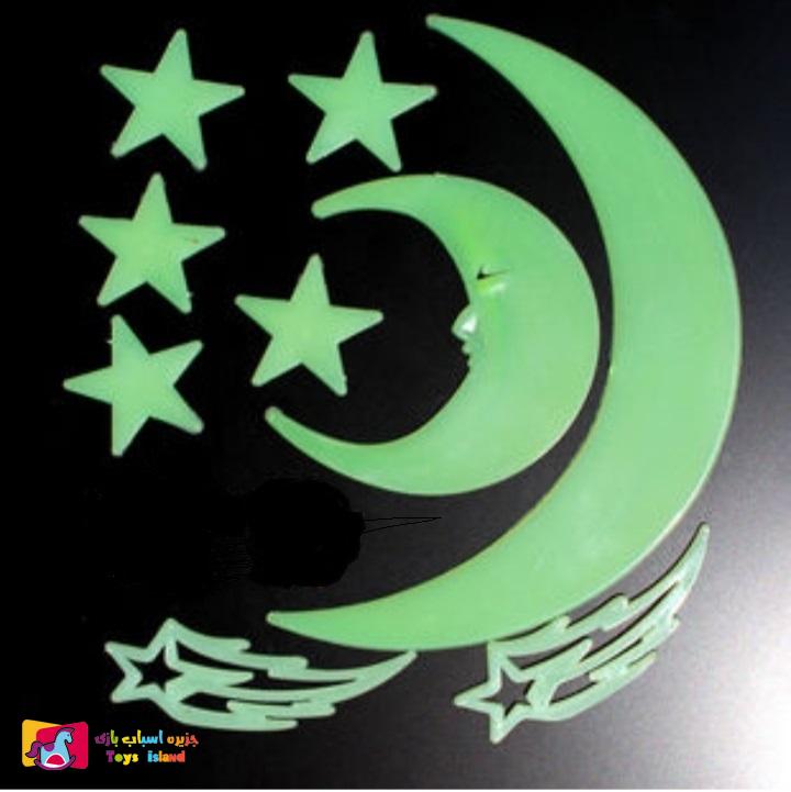 استیکر ماه و ستاره شب تاب ، یکی از محصولاتی است که هم اکنون به شما عرضه می کنیم . این استیکر ها با جذب کردن نور محیط اطراف و ذخیره کردن آن در هنگام شب و تاریکی از خود نور و نمای بسیار جذابی رو به نمایش می گذارند . استیکر ماه و ستاره را می توان به دیوار و یا سقف اتاق کودک خود بچسبانید و برای چسباندن این محصول نیازی به چسب های مایع که باعث خرابی دیوار می شوند نیست زیرا در پشت استیکر ها یک لایه کاغذ وجود دارد که در صورت جدا کردن آن از استیکر می توان از چسب خود استیکر ها استفاده نمود . جنس استیکر ها از پلاستیک فشرده شده و با کیفیت است . طول عمر این محصول نامحدود می باشد اما بستگی به میزان استفاده  دارد .