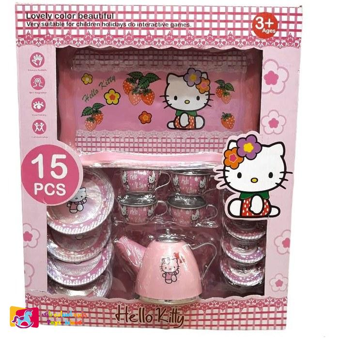 ست چایخوری فلزی طرح کیتی چهار نفره است و کودک می‌تواند به‌صورت هم‌زمان از چند مهمان پذیرایی کند. اندازه قطعات متناسب با دست کودک طراحی شده تا به‌راحتی بتواند آن‌ها را جابه‌جا کند و در بازی‌های طولانی دچار خستگی نشود. این ویژگی‌ها باعث شده این ست یکی از محبوب‌ترین انتخاب‌ها در میان اسباب‌بازی‌های خاله‌بازی دخترانه باشد.