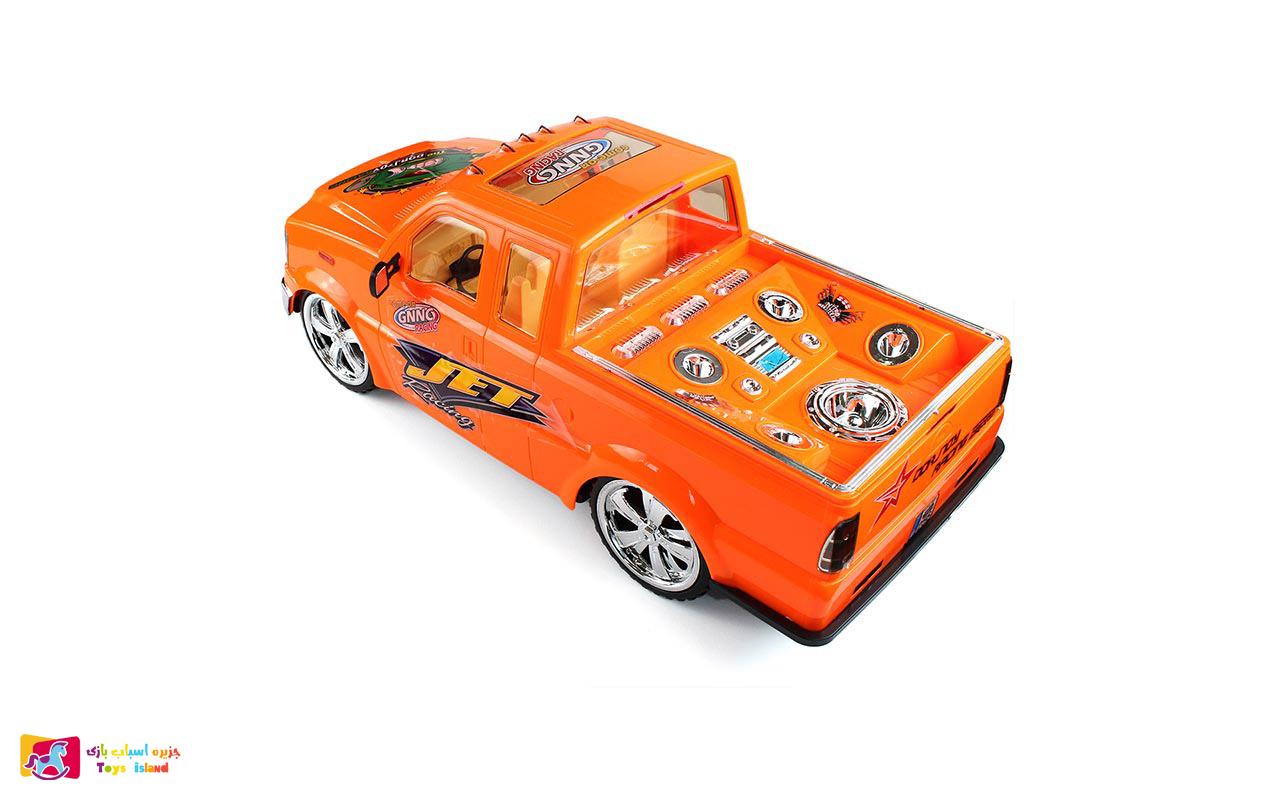 ویژگی ها :حرکت چرخ ها به صورت قدرتی است – رینگ اسپرت جادویی دارد که با حرکت کردن فاصله ی بین رینگ ها از بین میرود .دارای فرمان است -در قسمت پشت وانت باند و اسپیکر ضبط قرار دارد .ماشین فوق العاده خاص و جذابی است که همه ی کودکان را به خود جذب میکند .