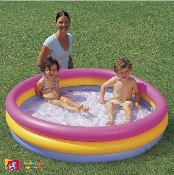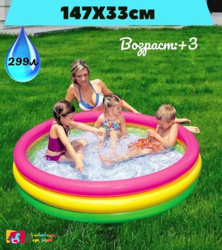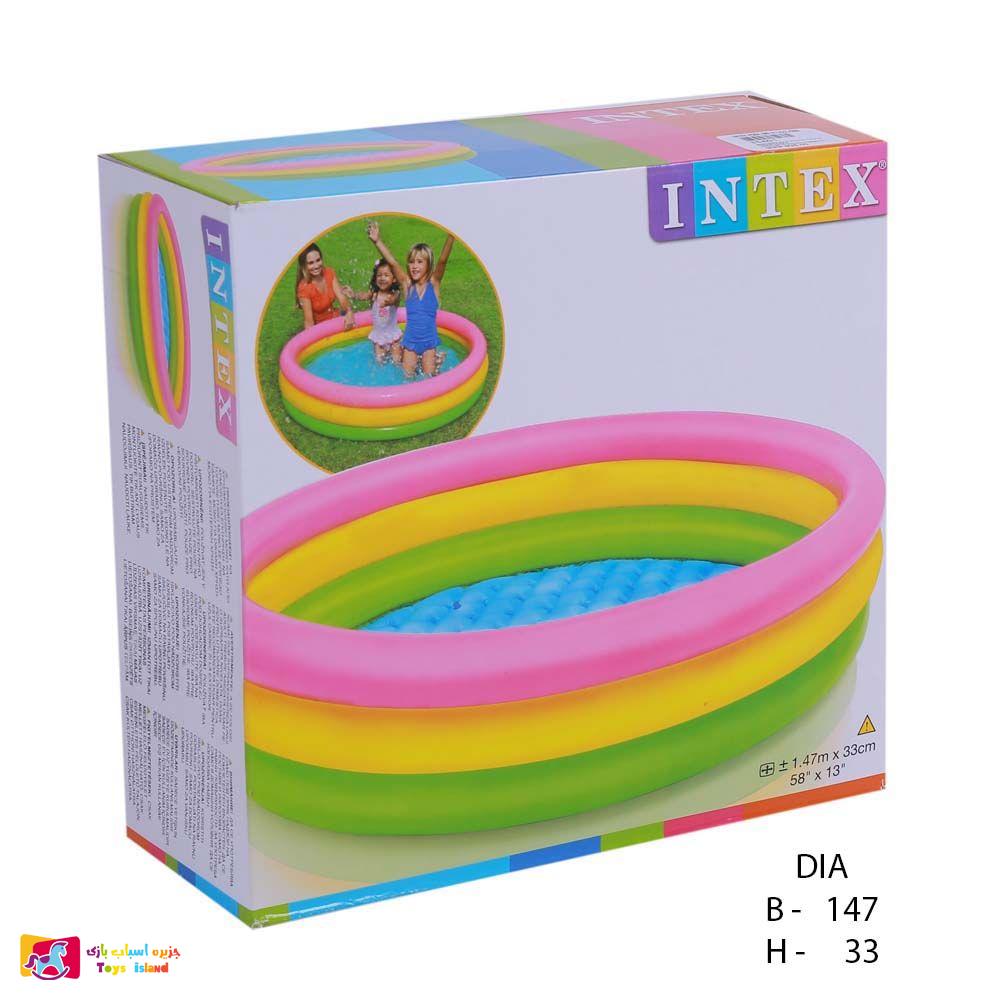 استخر بادی گرد رنگی اینتکس از سری محصولات جدید و سرگرم کننده شرکت اینتکس می باشد که وسیله ای بسیار نشاط آور و مهیج برای کودکان در فصل داغ تابستان و آب تنی فرزندان شما می باشد. ابعاد به کار رفته در این استخر بادی شامل ( قطر 147 سانتی متر ، ارتفاع 33 سانتی متر ) می باشد که قابل استفاده برای سنین زیر 8 سال ساخته شده و علاوه بر استخر آب می توان در فصل زمستان در محیط خانه و فضای بسته به عنوان یک استخر توپ و یک وسیله محصوری و سرگرم کننده استفاده کرد . به همراه این استخر بادی یک عدد برچسب تعمیرات نیز قرار دارد که از آن می توان در مواقع ضروری و هنگام برخورد بدنه استخر با اشیاء تیز و آسیب رسیدن به بدنه استخر می توان با استفاده از این برچسب تعمیرات در مدت زمان کوتاهی محل آسیب دیده را ترمیم و به حالت قبل بازگرداند . اما باد کردن و راه اندازی این استخر به یک پمپ باد دستی یا سوزنی مخصوص محصولات بادی نیاز است تا در مدت زمان کوتاهی و از طریق سه محفظه جداگانه که بر روی بدنه استخر تعبیه شده محصول را باد و راه اندازی نمود که البته پمپ باد نیز باید به صورت جداگانه خریداری شود.