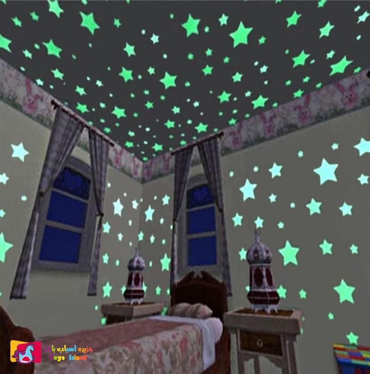 این اجسام دکوری زیبا که به شکل اجرام آسمانی دوست داشتنی از قبیل ماه و ستارگان ساخته شده‌اند را روی دیوار یا سقف اتاق خوابتان بچسبانید و از مشاهده درخشش آن‌ها در تاریکی شب‌ها،لذتی شبیه خوابیدن در فضای باز و تماشای آسمان پرستاره را تجربه کنید.حتما بارها در دوران کودکی و یا سفرهایتان به مناطق خوش آب و هوا،خوابیدن زیر آسمان پر ستاره را تجربه کرده‌اید اما با توجه به سبک زندگی آپارتمانی این روزها،همه ما قدری دل تنگ آن هستیم چرا که آرامش شب هنگام چیزی است که همه انسان‌ها در تکاپوی رسیدن به آن هستند.تعدادی از ستاره ها جای آویزان کردن دارند که آن ها را میتوانید با نخ از سقف آویزان کنید تا ستاره های شب تاب معلقی داشته باشید که با وزش نسیمی کوچک از پنجره یا جریان هوای کولر و پنکه، به حرکت درآمده و جلوه زیبایی به شب‌های شما می‌دهند