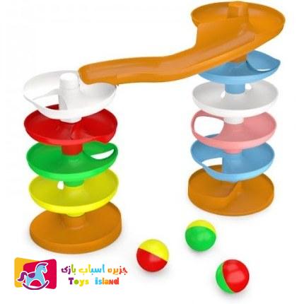 کودکان در این بازی میتوانند با رنگها آشنا شوند و مهارت اولیه خود را افزایش دهند. سرسره ای با 8 طبقه که توپ های رنگی صدادار در آن به پایین حرکت می کنند و ضمن جلب حواس کودک و کشف جهان پیرامون هیجان فراوانی را برای کودک به ارمغان می آورد به طوری که دوست دارد این فرآیند را بارها و بارها آزمون کند. برج توپ پلاس شامل 8 طبقه و 3 توپ رنگی و یک پل است که دنیای کشف کودک را از یک برج به برج دیگر گسترش می دهد. برج توپ پلاس از بهترین مواد اولیه و با استانداردهای لازم جهت استفاده کودک زیر سه سال ساخته شده است.