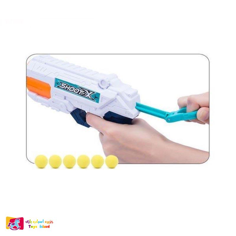 1. یکی از توپ های گرد اسفنجی را از قسمت جلوی لوله تفنگ، در داخل لوله قرار دهید.