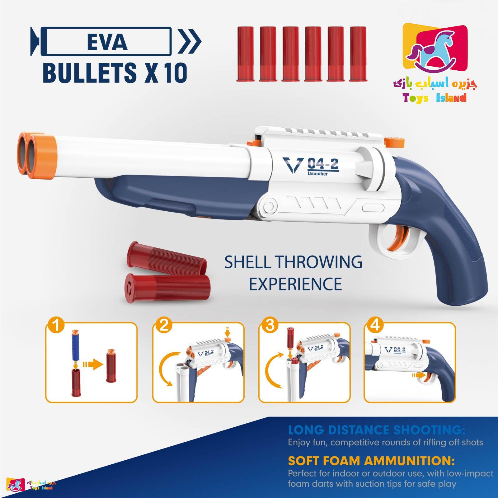 خانهتفنگ و مبارزهتفنگ با تیر فومی تفنگ پوکه پران خارجی تیر اسفنجی دو لول کد 9950