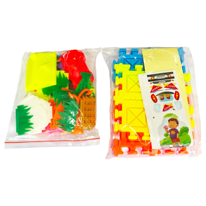 تمامی قطعات از پلاستیک باکیفیت و مقاوم ساخته شدهاند و برای استفاده کودکان بالای ۳ سال کاملاً مناسب هستند. قطعات بهگونهای طراحی شدهاند که بهراحتی به یکدیگر متصل شوند و کودک بدون نیاز به ابزار خاصی بتواند سازههای مختلف بسازد.