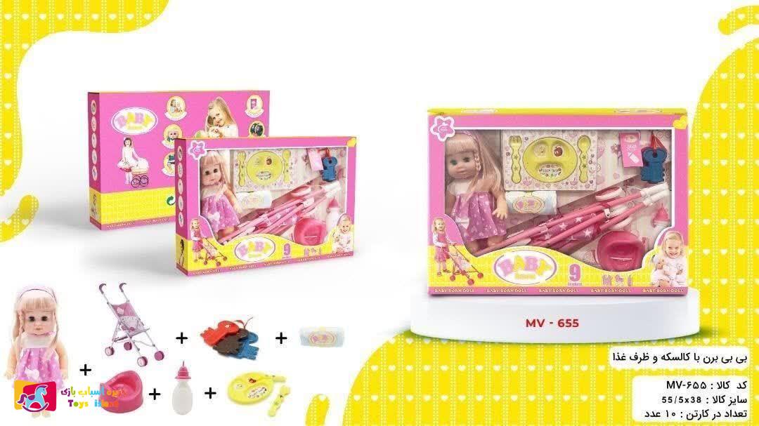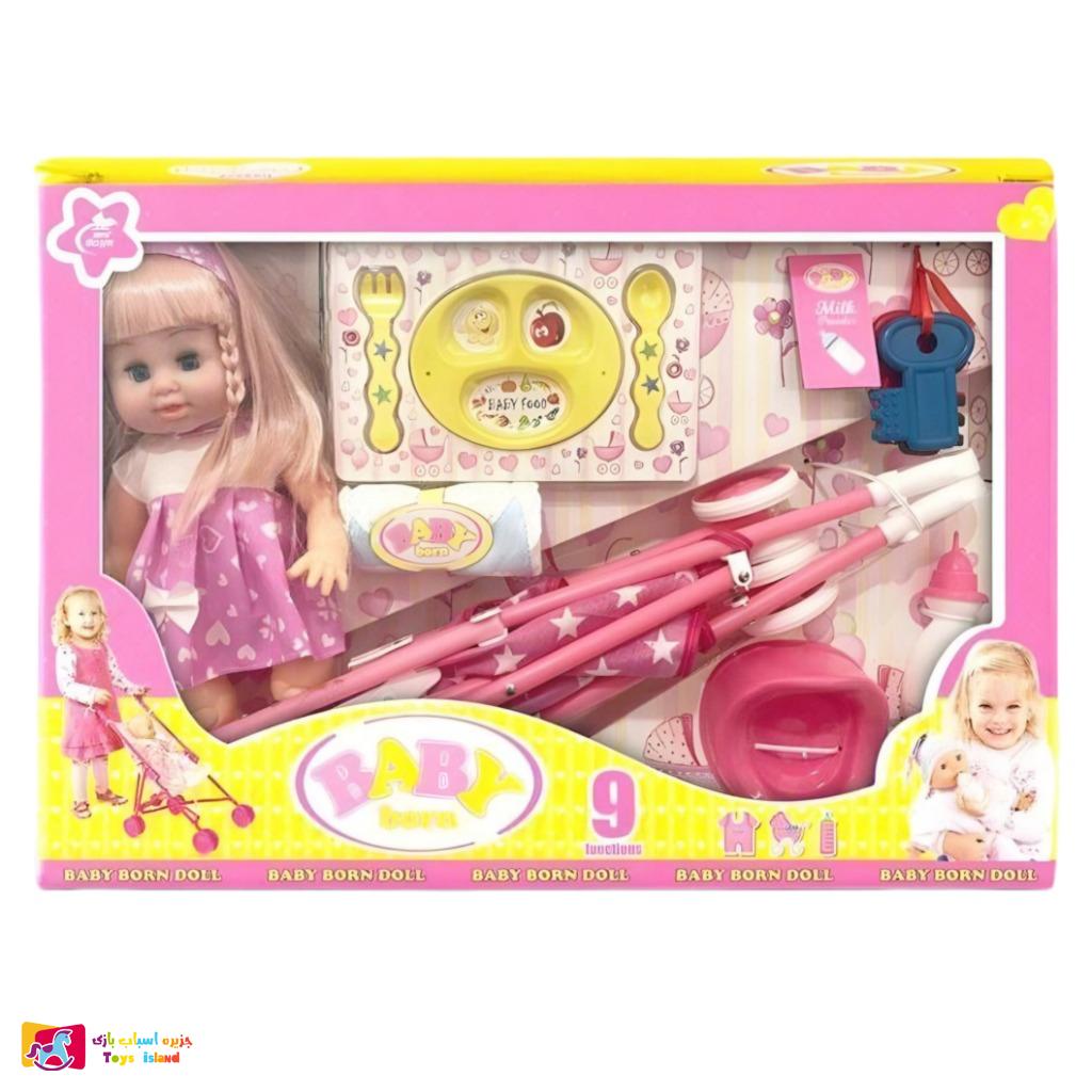 • نام محصول: عروسک بیبی بورن ۹ کاره با کالسکه