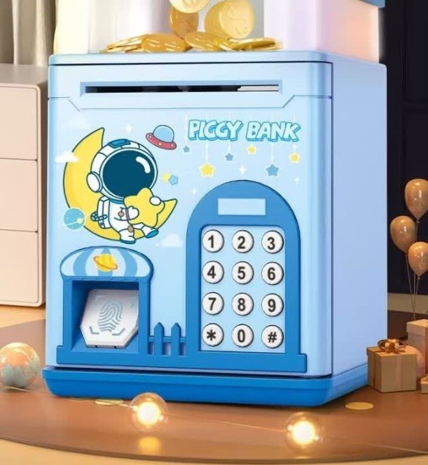 اسباب بازی  قلک رمزدار اثر انگشتی مدل چمدانی آیتم 6688-16 :این گاو صندوق بامزه برای کودکان بسیار جذاب و دوست داشتنی و شما می توانید با خرید این محصول به فرزندان خود پس انداز کردن رابه آن ها بیاموزید و هم می توانید سرمایه ای برای آینده آنها جمع آوری کنید.همچنین دو بخش برای انداختن سکه و بخشی برای قرار دادن اسکناس دارد که اگر سر اسکناس را به محفظه نزدیک کنید اسکناس بلعیده می شود.می توانید برای در قلک از رمز چهار رقمی استفاده کنید و هنگام وارد کردن اعداد نور و صدا پخش خواهد شد.