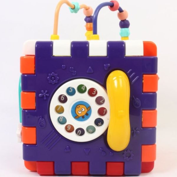 با چرخاندن شماره گیر تلفن روی یکی از وجه ها و فرمان مکعب روی دیگر وجه مکعب، صدای جذابی تولید می شود و بدین وسیله می توانید اعداد را به کودک آموزش دهید. ضمنا گوشی تلفن نیز در کنار شماره گیر تلفن نصب می شود.